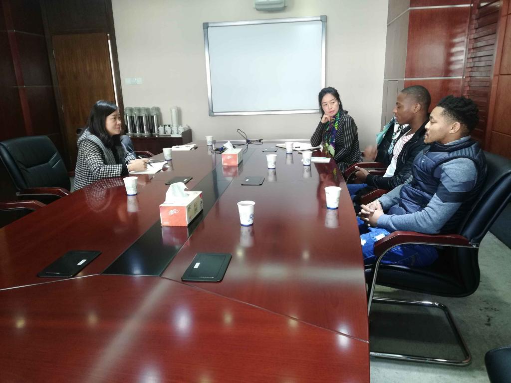 调研座谈后,杨惠老师还与两名第二期在读的南非学生进行了交流。两名南非学生分享了他们对中国的印象和在这里学习生活的感受,对该培训项目进行了积极的评价。