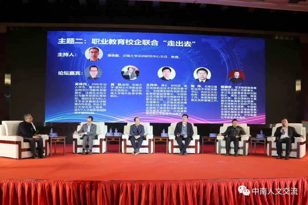 在圆桌论坛环节,教育部长江学者、浙江师范大学非洲研究院院长刘鸿武主持了“中外人文交流与教育对外开放”主题讨论,江苏省教育厅国际合作与交流处处长贺兴初、南京工业职业技术学院校长谢永华、东南大学集团经济与产业组织研究中心主任胡汉辉、复旦大学国际问题研究院教授邢丽菊、中国非洲史研究会会长助理董启馨围绕议题参与交流讨论。云南大学非洲研究中心主任张永宏主持了“职业教育校企联合‘走出去’”主题讨论,南京信息职业技术学院党委书记王丹中、云南交通职业技术学院党委书记赵伟、东南大学莫纳什大学联合研究生院院长黄凯、亚龙智能装备集团股份有限公司董事长陈继权、华为技术有限公司全球教育合作计划总监吴林托围绕议题做了实践经验交流。