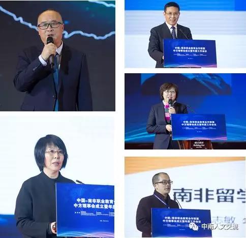 在经验交流环节,南非中国文化和国际教育交流中心副主任陈松涛、黄河水利职业技术学院校长祝玉华、温州职业技术学院党委书记王靖高、常州信息职业技术学院副校长眭碧霞、博众精工·苏州科茵斯智能科技有限公司总经理蔡志敏分别介绍了各自教育国际交流合作经验和南非学生来华学习项目的开展情况。