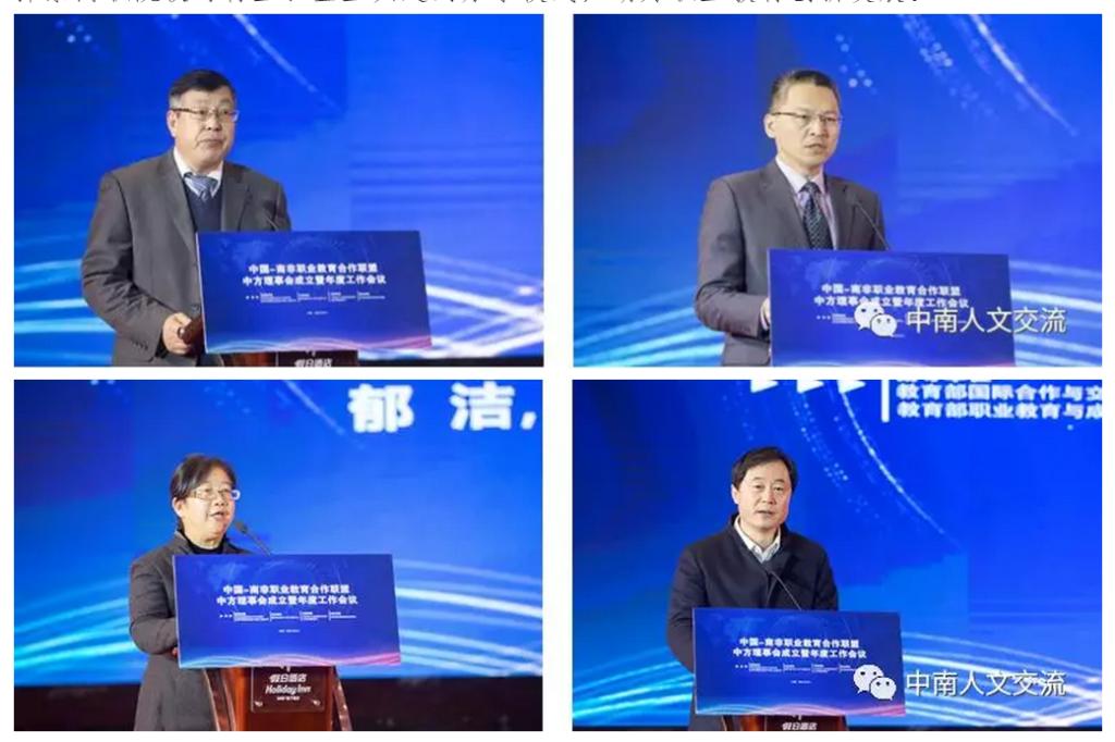 王钧铭代表承办单位致欢迎辞,他表示学校把开拓中南教育合作作为教育国际交流合作的关键举措,创设了“实习+实训”的南非学生培训项目模式。李旭东在致辞中回顾了中非和中南非合作的总体发展情况,传达了全国教育工作会议的有关工作要求。他强调,联盟中方理事会的成立对促进两国职教交流、共同应对经济社会发展面临的挑战和问题具有重要意义,并对联盟发展提出工作建议。郁洁在致辞中表示职业教育对外开放要坚持“请进来与走出去、政府合作与民间合作、教育合作与产业合作”三个相结合的工作思路,希望联盟成员单位不断提升自身能力建设,深化产教融合校企合作,发挥职教特色,讲好中国故事,发出中国职教声音。池宇在致辞中表示,省工信厅将进一步支持厅直属院校,优化中外合作办学机制,探索高职院校与行业、企业共建的办学模式,助力职业教育创新发展。