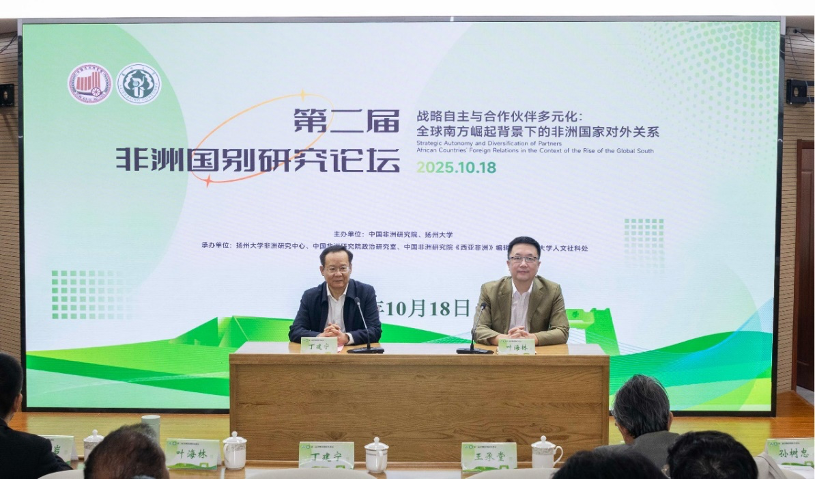 2025年10月18日,由中国非洲研究院与扬州大学联合主办,扬州大学非洲研究中心承办的第二届非洲国别研究论坛在扬州大学举行。本届论坛以“战略自主与合作伙伴多元化:全球南方崛起背景下的非洲国家对外关系”为主题,汇聚了来自全国近70家高校和研究机构的专家学者,围绕非洲国家外交政策、中非关系、全球南方、区域一体化等前沿议题展开深入研讨,旨在推动中国特色非洲国别研究知识体系的构建,服务中非命运共同体建设。云南大学非洲研究中心研究员张春、博士研究生黄世顺应邀参加了会议。